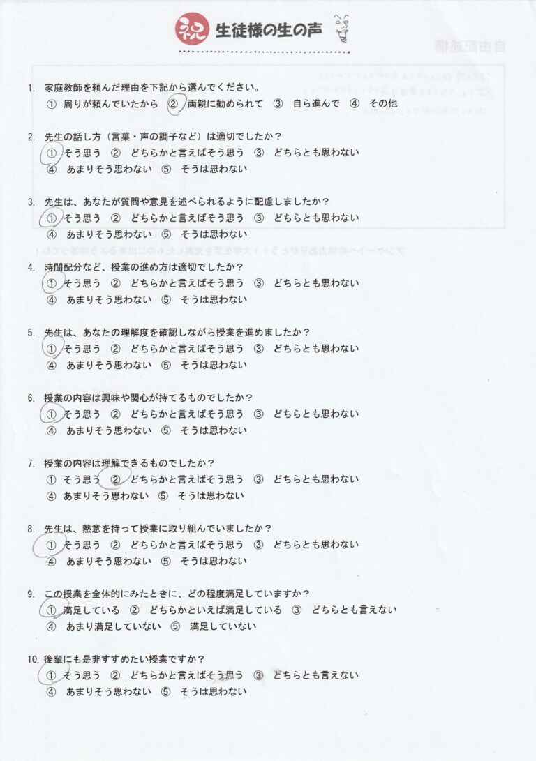 生徒さんの声、更新しました